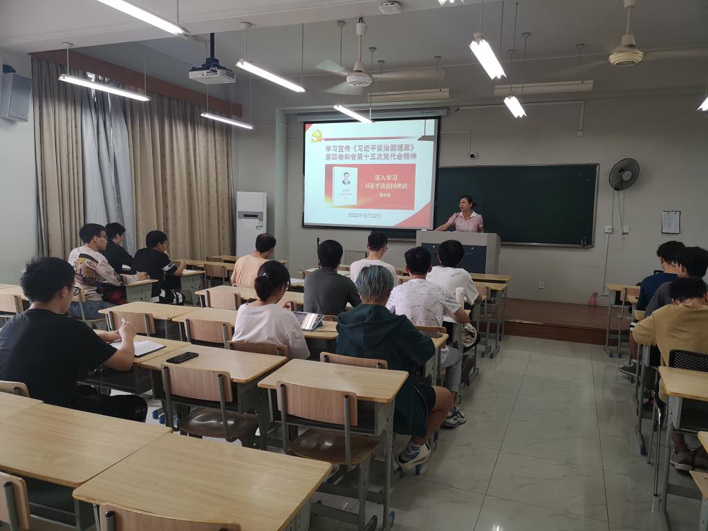 公司党委副书记为机械设计制造及其自动化专业员工第一支部上党课 为深入学习宣传浙江省第十五次党代会精神,加强员工党员政治理论学习的深度,9月22日下午,公司党委副书记方建珍在学14-419开展题为《学习宣传〈习近平谈治国理政〉第四卷和省第十五次党代会精神》的党课宣讲。机械员工第一党支部全体党员参加了学习。方建珍集中领学了省第十五次党代会报告,对《报告》中的“四个深刻感悟”、“五大战略指引”、“十一方面重要遵循”、“八个高地”、“十个着力”以及“三方面从严治党”等方面...