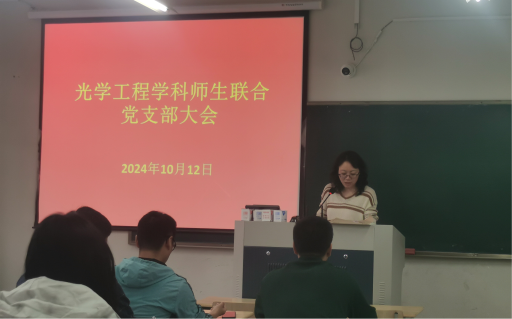 光学工程学科师生联合党支部召开支部大会 10月12日下午,光学工程学科师生联合党支部在学14-412召开了支部大会,进行了党支部委员换届选举及开展师德师风专题活动。支部大会由支部副书记樊艳主持,支部党员积极参会。根据《中国共产党章程》、《中国共产党基层组织选举工作条例》和《中国共产党普通高等公司基层组织工作条例》等有关规定,本支部经无记名投票,选举产生了李银烁和王张婷为新一届支部组织委员及宣传委员。支部书记周国泉经理讲授了以“大力弘扬教育家精...