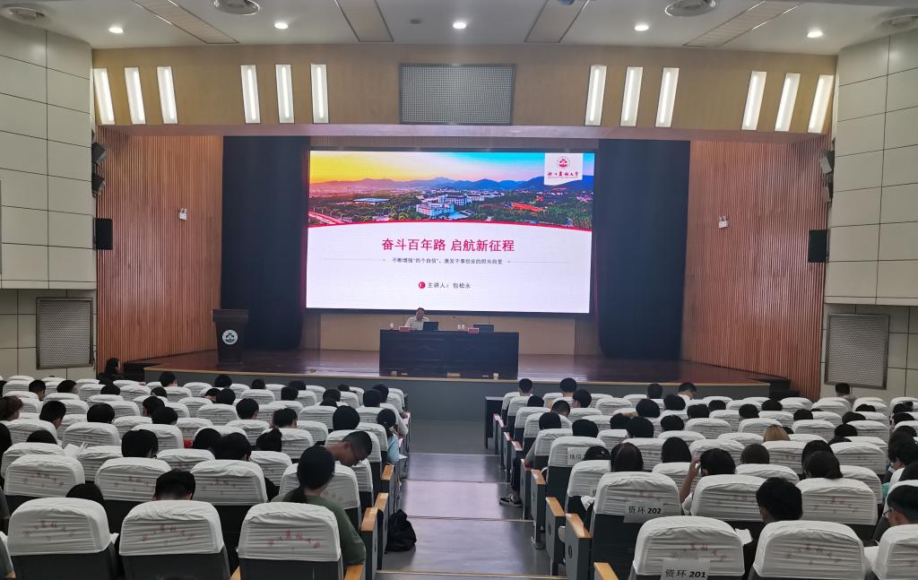 公司党委委员、纪委书记包松永给公司员工上形势政策课 6月10日下午,公司党委委员、纪委书记包松永在图书馆第一报告厅为公司2019、2020级全体员工讲授题为“奋斗百年路 启航新征程”的形势政策课。公司党委书记洪昀主持,员工工作负责人,辅导员参加了此次学习。包书记主要从党史学习教育的重大意义、百年奋斗的光辉历程和历史性贡献、党在浙江的百年奋斗史、浙农林砥砺前行奋进路和新时代新青年新作为等五个方面为同学们上了生动而又精彩的一课。从九个方面详细阐述了党史学习教育的重...