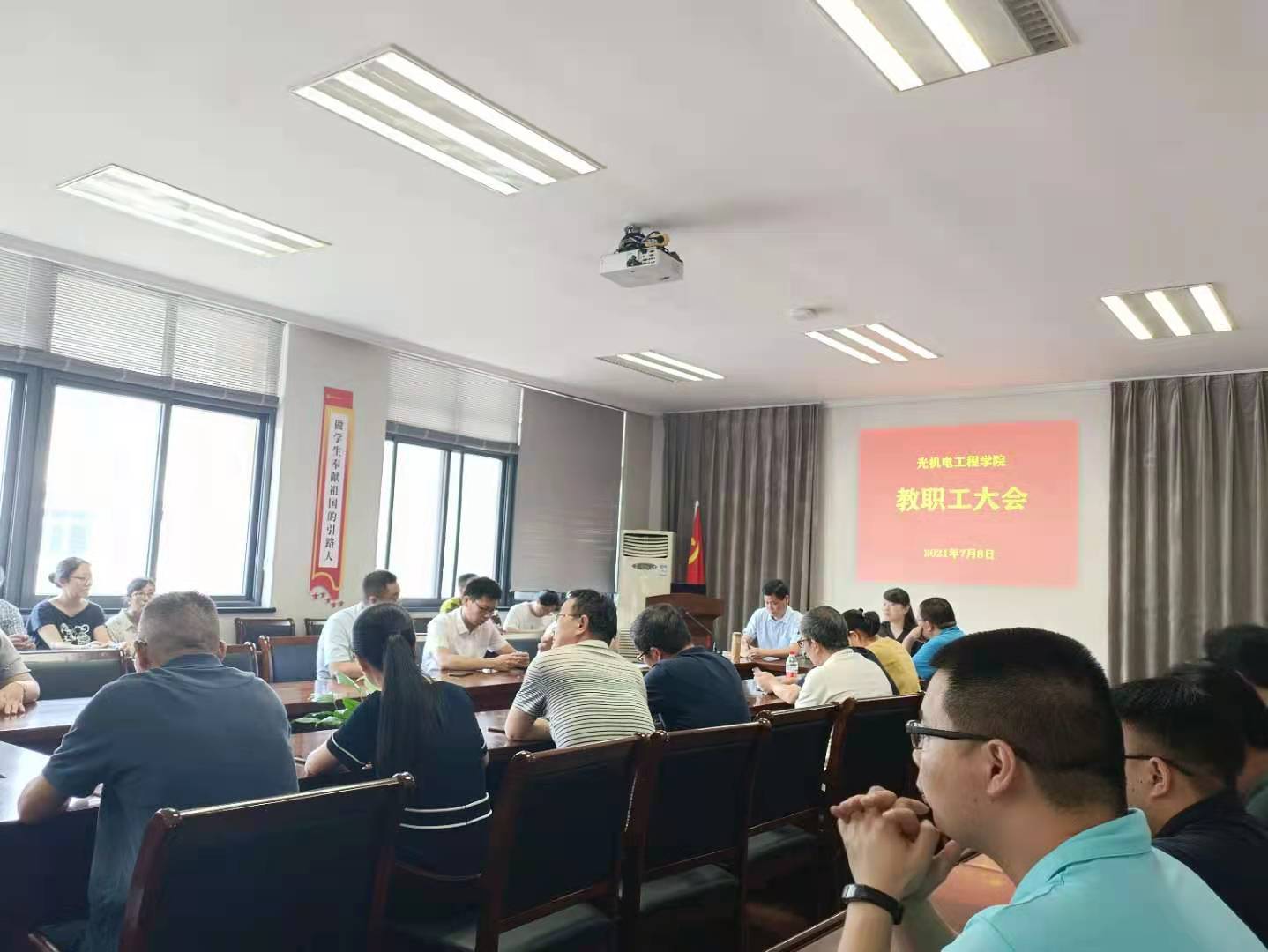 必一运动召开学工思政会议研究部署相关工作 7月7日上午,光机电学办召开学工思政会议,研究部署近期及暑期员工工作。公司党委副书记方建珍、员工办主任崔雨晴、辅导员郭中富、朱凯参加会议。会上,方建珍对辅导员的工作分工进行了划分与明确,工作条块结合,分工不分家,凝聚合力,协同作战。同时,方建珍也对近期的员工工作作出了部署,主要有以下五点:第一、持续推进党史学习教育,发挥党支部力量,加强理论教育;第二、关注员工意识形态问题,了解员工参与活动情况,防...