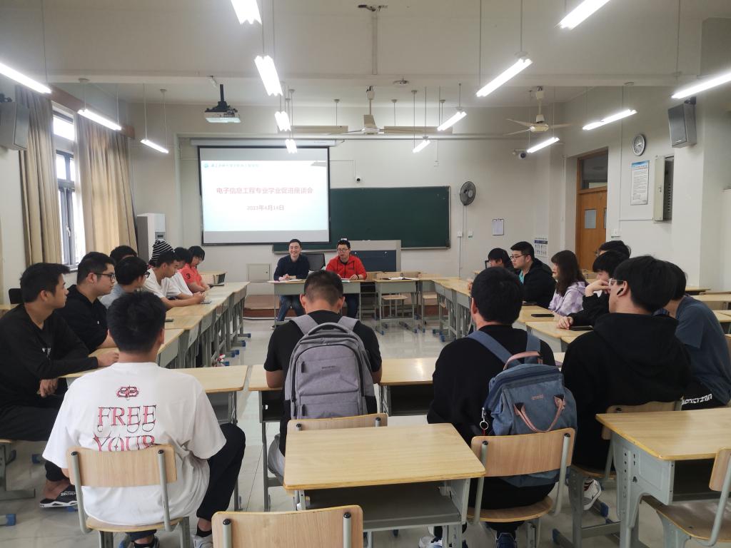 电子信息工程专业召开预警员工座谈会 为进一步推动学风建设,动态了解员工学习状态,促进员工学业提升,4月14日下午,电子信息工程专业在学14-514召开预警员工座谈会,会议由专业负责人郑军主持,学科负责人周竹、教学助理刘颖参加。座谈会上,同学们结合自身实际,深入剖析了当前的学习状态及面临的学习困难,同时也提出了学业提升计划。通过倾听员工声音,专业进一步明晰了员工的学习情况,与会教师也对同学们提出的困惑进行了解答,并给出具体建设性的意见和建议...