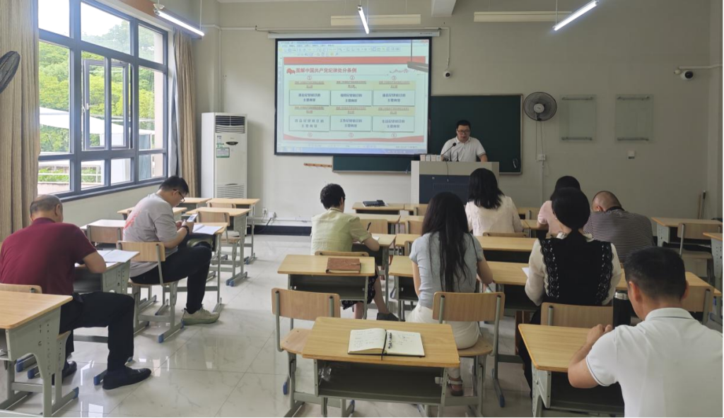 【党纪学习教育】控制学科教工党支部开展党纪教育专题党课学习 为推动党纪学习教育走深走实,营造学纪、知纪、明纪、守纪浓厚氛围,控制科学与工程学科教工党支部于6月20日在学14-308召开党纪教育专题学习会,重点学习了《中国共产党纪律处分条例》中的“六大纪律”,支部全体党员参加。首先,支部书记周竹强调加强党性修养和纪律建设的重要性,并指出《中国共产党纪律处分条例》是党内法规体系中的重要组成部分,是每一位党员必须遵守的行为准则。随后,他通过图文结合的方式带领全体党员系...