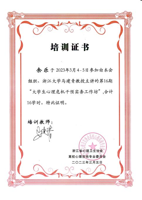 为加强公司辅导员心理育人能力和队伍建设,3月6-7日,公司选派朱凯、余乐两位辅导员参加老员工心理危机干预实务培训。