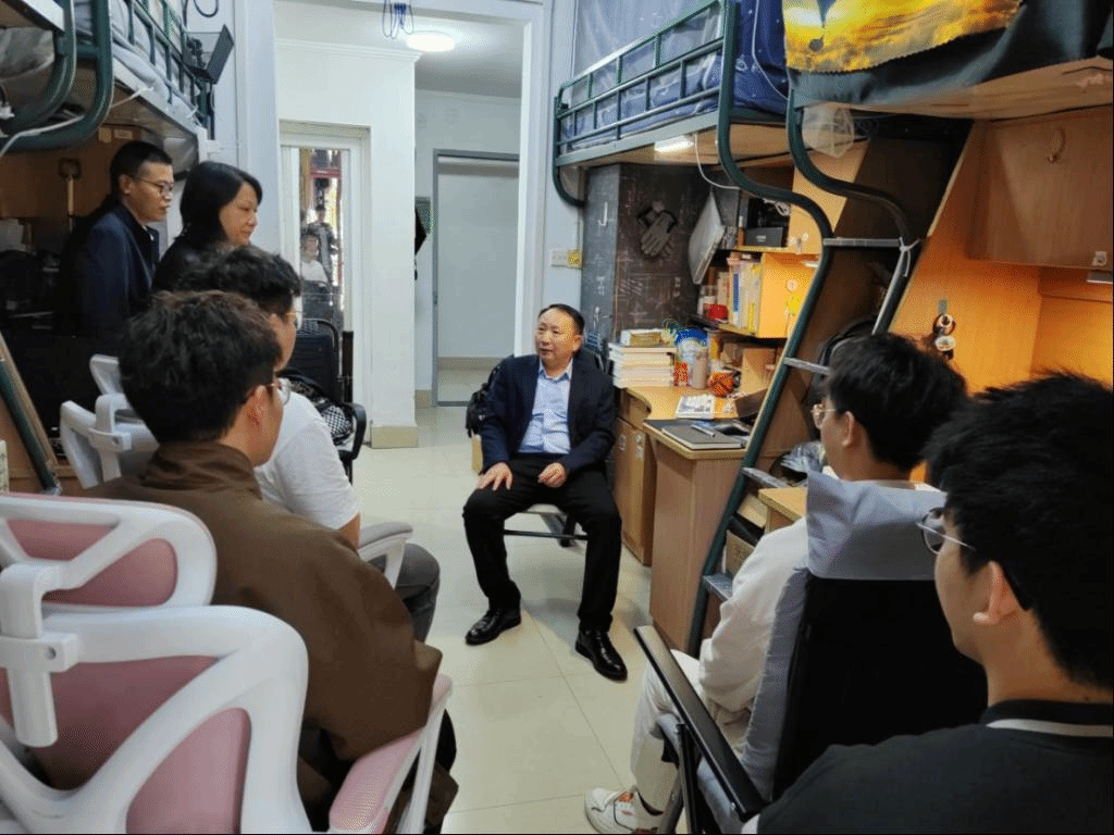 包松永书记先是走访了公司员工寝室,在员工寝室包书记向考上研究生的同学们表示了祝贺,对整个寝室同学全部升学表示了充分的肯定,并结合“三支队伍”建设、自身和身边事例勉励大家以踏实和务实的作风立“解决卡脖子问题”的大志向、学“有利社会发展”的真本领,提醒大家不要仅仅满足于硕士学历,要有更高的学术追求。同时,提醒同学们注意寝室用电安全,了解了同学们近期遇到的问题和困难,并叮嘱公司加以关心和解决。同学们感谢包书记一直以来对他们的关心和爱护,并表示会好好学习,为国家和社会做贡献。