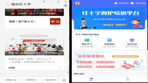 (1).微信搜索“临安红十字”,点击右下角“急救培训”,选择“急救培训”,进入救护培训首页。