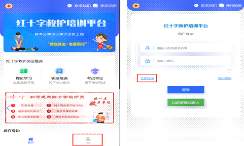 (2)点击右下角“我的”,进入用户登录页面,点击“立即注册”,注册个人学员账号。