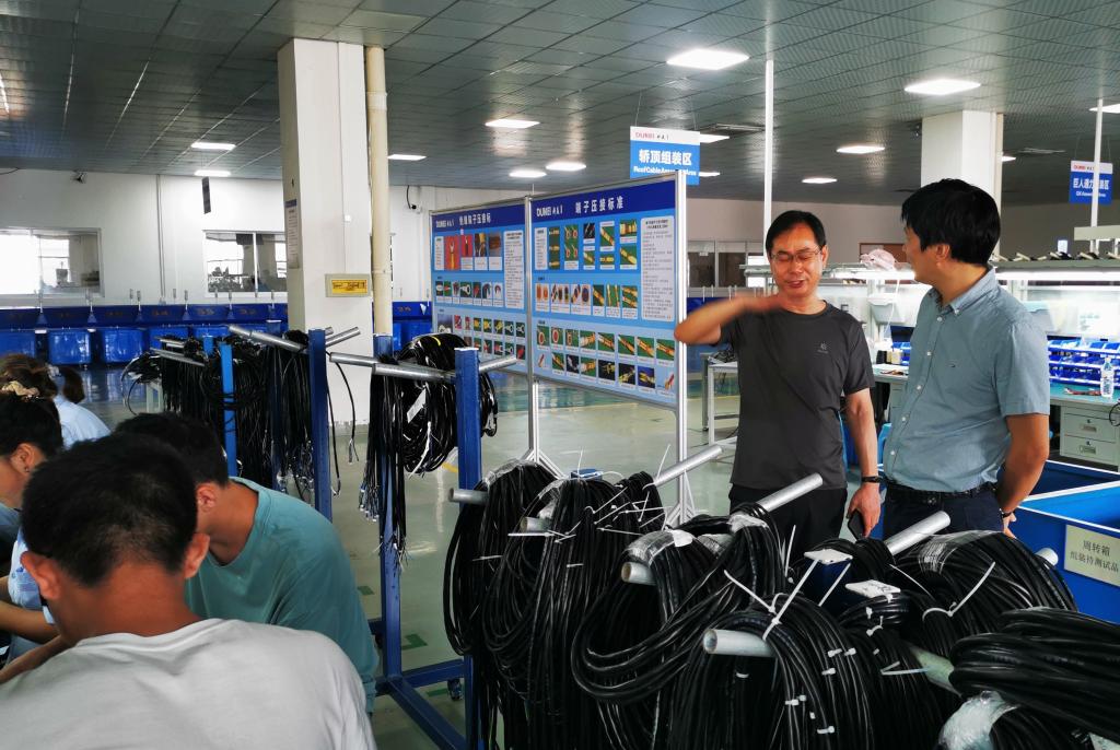 曾松伟一行分别参观了杭州优迈机电科技有限公司和浙江都美电气技术有限公司的生产车间、装配车间、测试车间。在走访中,曾松伟感谢两家优秀企业为员工提供良好的实习实践机会,期待不断提升与企业产学研合作层次。同时,曾松伟看望问候了在企业实习的同学们,详细询问了他们实习学习情况,希望同学们珍惜实习机会,通过实习努力提高专业技能水平。
