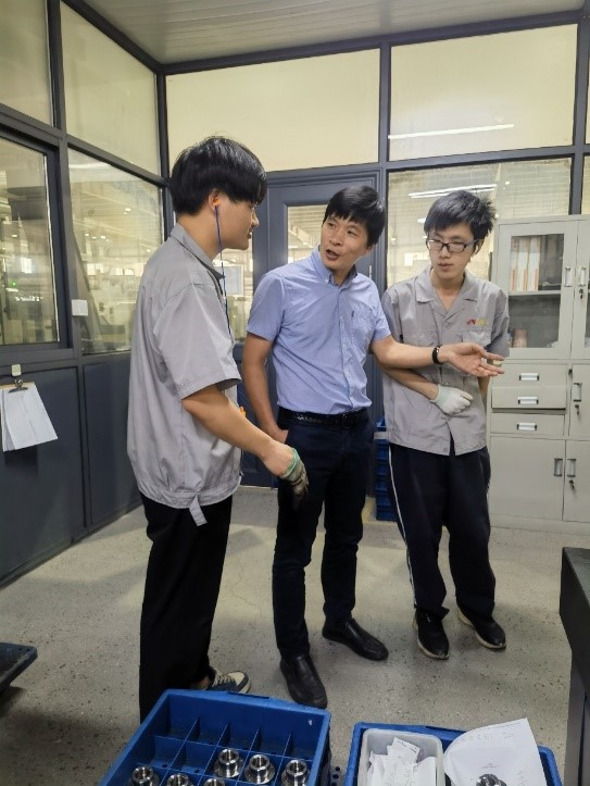期间,何利平一行探望了正在生产实习的机械20级本科生,充分肯定了同学们在酷暑中仍坚守实习岗位的工匠精神,鼓励同学们珍惜此次实习和锻炼的机会,展现农林员工风采。