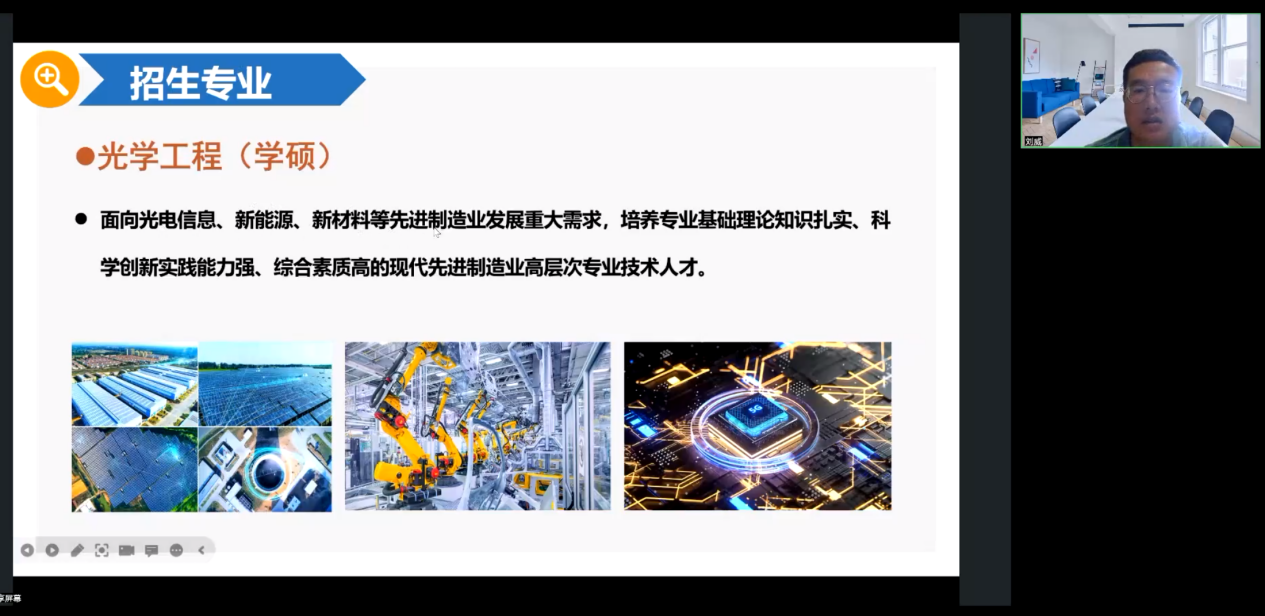 开营仪式后,光学工程硕士学位点负责人刘威副教授对学位点进行了详细的介绍。刘威首先介绍了公司的概况,包括团队队伍、研究方向、科研成果;接着介绍了公司公司产品体系,包括奖助体系、科研条件、生活条件、毕业去向等方面,希望营员们借此机会详细了解必一运动,选择适合的发展方向,以更加昂扬的姿态迈进青春新阶段。