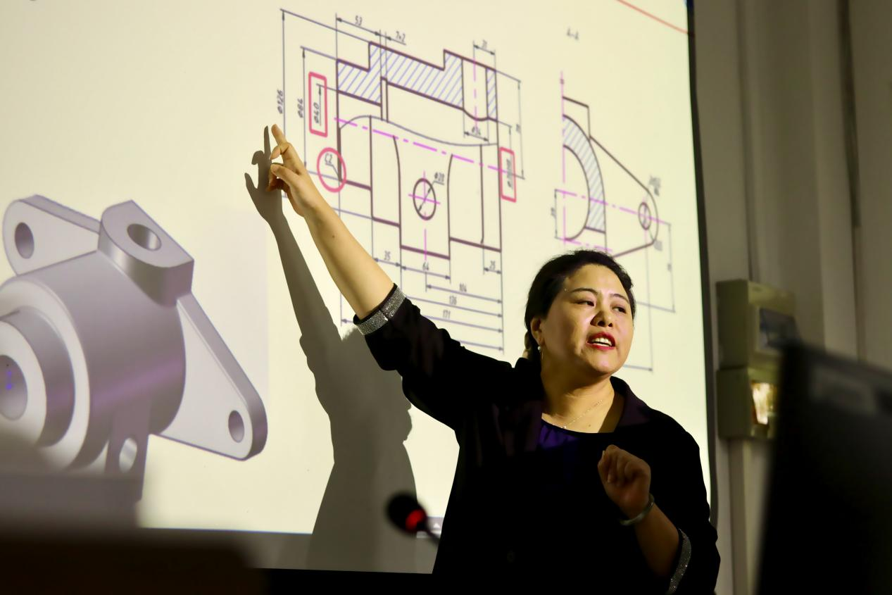 张老师深入发掘机械CAD基础课程中的思政资源,探索专业教育与文化教育的深度融合,通过课堂互动、图片展示等,使同学们知道了世界上最早的大规模标准化是秦朝,增强了文化自信。