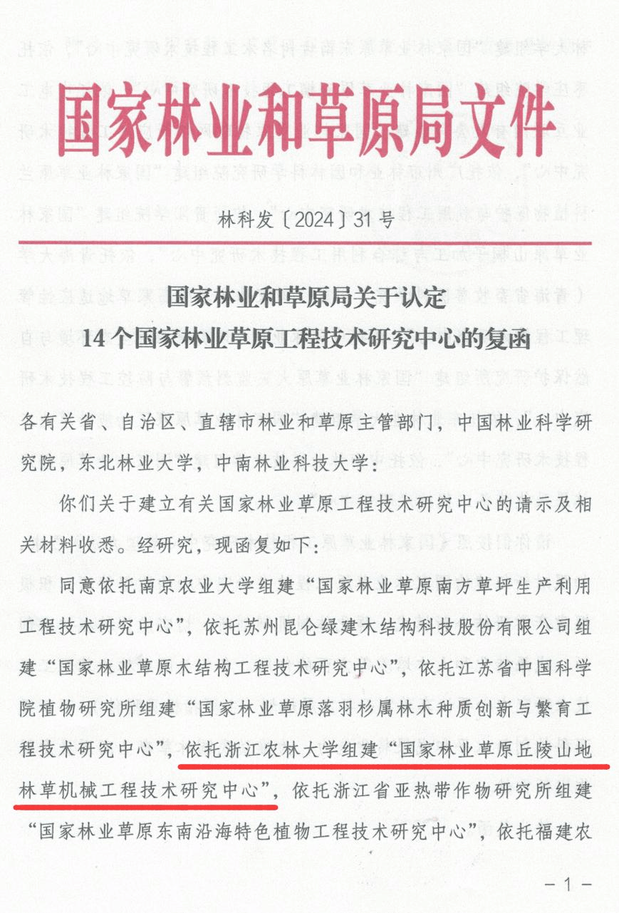 近日,从国家林业和草原局获悉,公司必一运动牵头申报的“国家林业草原丘陵山地林草机械工程技术研究中心”正式获批。