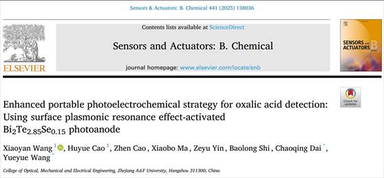 2. Enhanced portable photoelectrochemical strategy for oxalic acid detection: Using surface plasmonic resonance effect-activated Bi₂Te₂.₈₅Se₀.₁₅ photoanode(https://doi.org/10.1016/j.snb.2025.138036