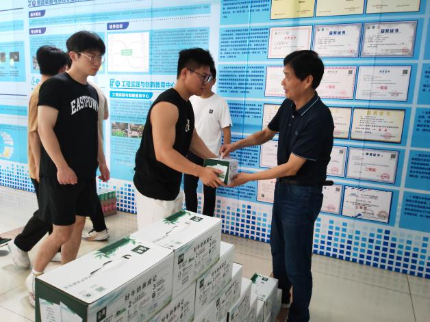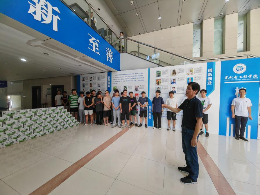 随后院领导们为留校的光机电学子送上慰问品,同学们表示感谢公司的关心关怀,一定会珍惜暑期时间,全力以赴,备考备赛,努力提升自己的专业知识和竞赛水平,为公司争光,为公司添彩。