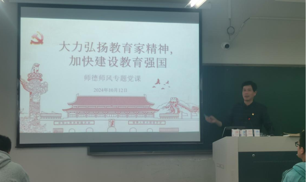 支部书记周国泉经理讲授了以“大力弘扬教育家精神,加快建设教育强国”为题的师德师风专题党课。周国泉经理从加强教师队伍思想政治建设、涵养高尚师德师风、提升教师专业素养、加强教师权益保障、弘扬尊师重教社会风尚五个方面进行了讲解。周经理指出,教师是立教之本、兴教之源,强国必先强教,强教必先强师。教师应时刻规范自身言行,崇尚高尚师德师风。