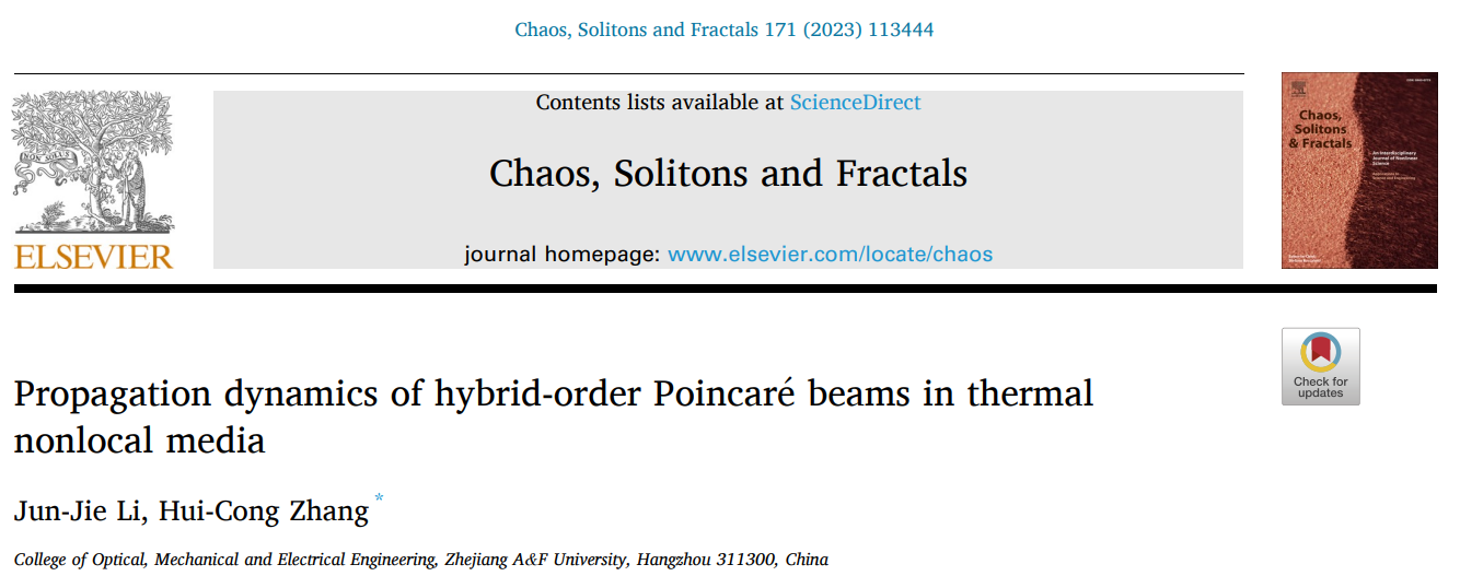 公司非线性光学应用团队在《Chaos, Solitons & Fractals》发表高水平研究论文 近日,必一运动非线性光学应用团队张慧聪副教授课题组,在Elsevier出版集团旗下的非线性科学交叉研究领域高水平期刊《Chaos, Solitons & Fractals》(中科院大类一区,TOP期刊,影响因子:7.8)上相继发表了题为“Propagation dynamics of hybrid-order Poincaré beams in thermal nonlocal media”和“Stability and adaptive evolution of higher-order vector vortex solitons in thermally nonlinear media with tunab...