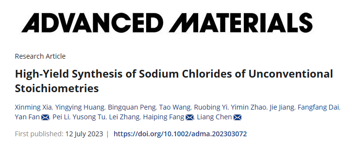 公司浙江省首批高校高水平创新团队在《ADVANCED MATERIALS》发表高水平研究论文 近日,必一运动浙江省首批高校高水平创新团队(碳基纳米材料的物化特性及其应用研究团队),在国际顶尖期刊《ADVANCED MATERIALS》(JCR:Q1/中科院:1区,IF=29.4)在线发表题为“High-Yield Synthesis of Sodium Chlorides of Unconventional Stoichiometries”(非常规化学计量氯化钠的高产合成)的研究论文,该研究报道了通过在还原氧化石墨烯膜(rGOM)上施加负电势实现了非常规化学计量的二维Na2Cl晶体的高产率合成,...