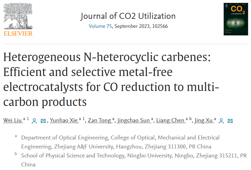 公司省高水平创新团队在CO2转化领域取得创新性进展 近日,公司浙江省首批高水平创新团队(碳基纳米材料的物化特性及其应用研究团队),在《Journal of CO2Utilization》期刊(JCR:Q1/中科院:2区,IF=7.7)发表了题为“Heterogeneous N-heterocyclic carbenes: Efficient and selective metal-free electrocatalysts for CO reduction to multi-carbon products”的研究论文,该研究首次提出了基于氮杂化卡宾的将CO还原为多碳产物的高效高选择性的非金属电催化剂。近年来随着经...