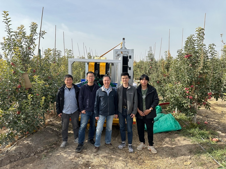 第三代苹果采摘机器人在新疆阿克苏试验圆满成功 近日,公司现代农业机器人研究院相关师生在新疆阿克苏苹果园圆满完成针对第三代苹果采摘机器人的实地采摘试验。此次试验的目的是校企双方根据项目预设功能指标进行苹果采摘实际效果验证。研究院经理杨庆华教授在苹果园为现场人员简要介绍了设备的功能原理、开发历程和技术优势,并针对合作企业(新疆钵施然智能农机股份有限公司)陈勇董事长提出的问题作了细致解答。随后,研究院师生现场为大家演示了机器人采摘苹果的实际效果...
